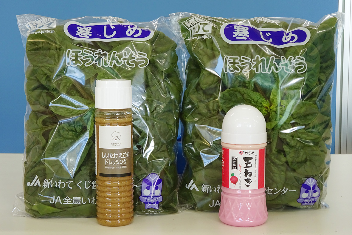 寒締めほうれんそうとシイタケドレッシングセットをプレゼント