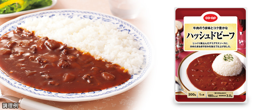 デミグラソースと牛肉のコクと旨みをベースに、じっくりと炒めた玉ねぎの甘みを加えて仕上げた、ハッシュドビーフです。