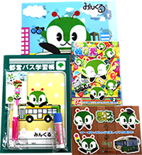 オリジナル「みんくる」グッズ(ノート、ぬりえ、ファイル、マグネット、シャープペン、スティックのりのセット)をプレゼントします。