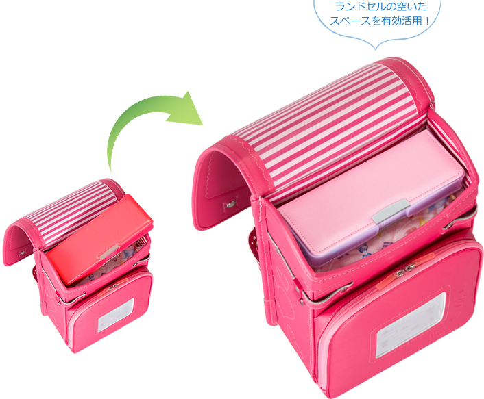 「筆入れがフタの役割をしてくれるので、中身の飛び出し防止にもなるみたい。スリムだから持ちやすいみたいで、息子もお気に入りです」