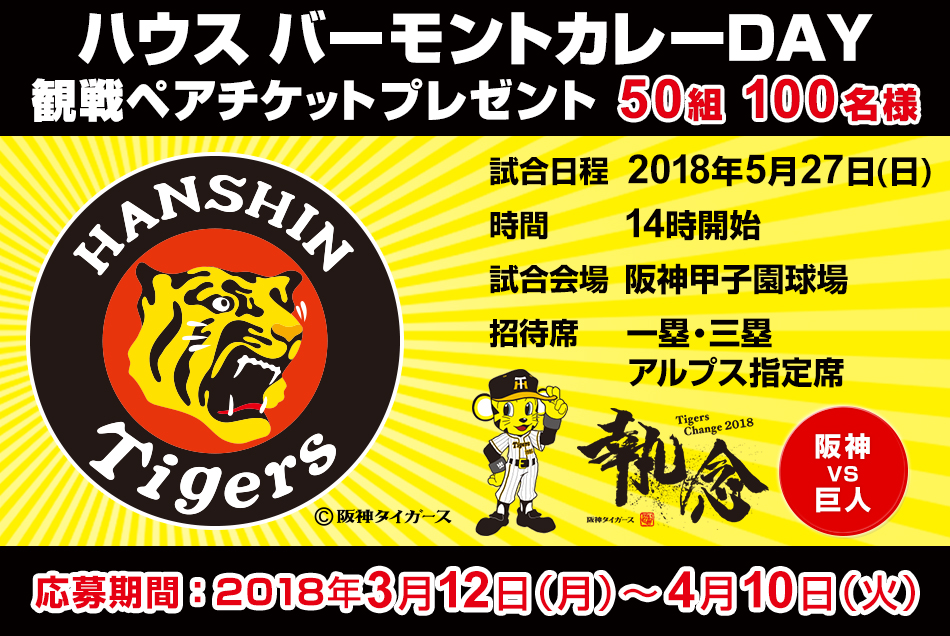 阪神VS巨人戦ペアチケットを抽選で50組100名様にプレゼントいたします。