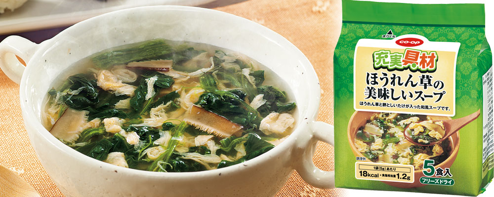 充実具材ほうれん草の美味しいスープを抽選で5名様にプレゼント