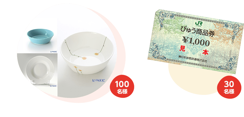 スープ皿100選(1枚) などを抽選で130名様にプレゼントいたします。
