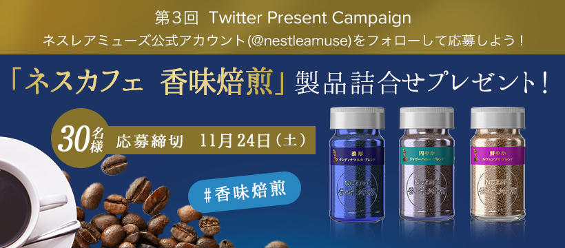 「ネスカフェ 香味焙煎」製品詰合せを抽選で30名様にプレゼントいたします。