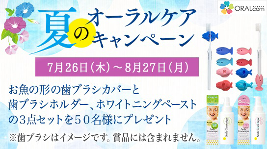 お魚の形の歯ブラシカバーと歯ブラシホルダーなどを抽選で50名様にプレゼントいたします。